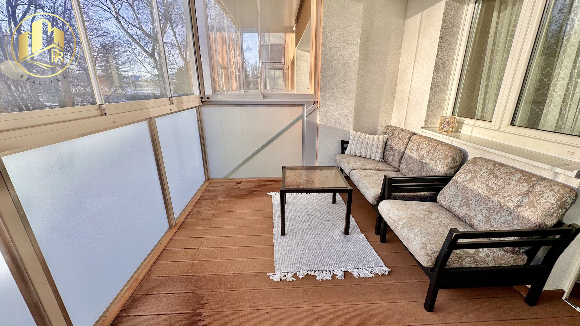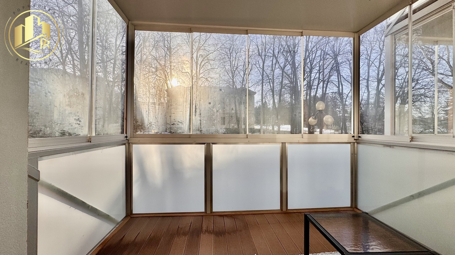 * veľký zasklený balkón