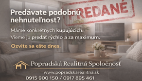 📞 Zavolajte nám ešte dnes! 0915 900 150 / 0917 895 461 -> Radi Vám poskytneme bližšie informácie alebo zabezpečíme osobnú obhliadku.